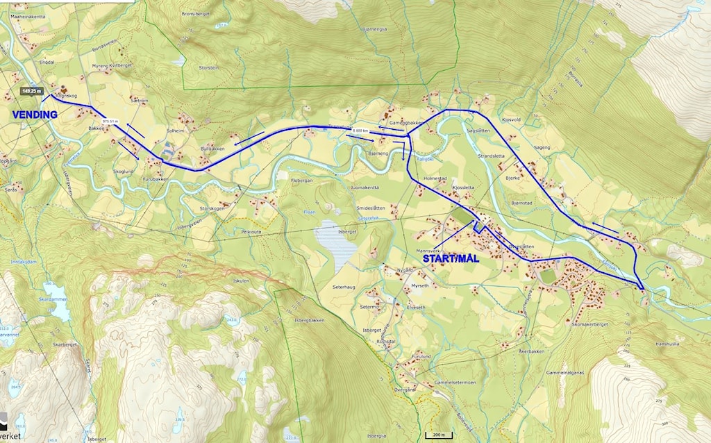 10 km: Start ved Samfunnshuset i Tverrelvdalen – følger Sønnvismoen mot kryss Stillaveien – Til venstre ved kryss Stillaveien – Følger Stillaveien til kryss Sønnvismoen mot samfunnshuset – Rundt samfunnshuset og ny runde. Mål ved Samfunnshuset